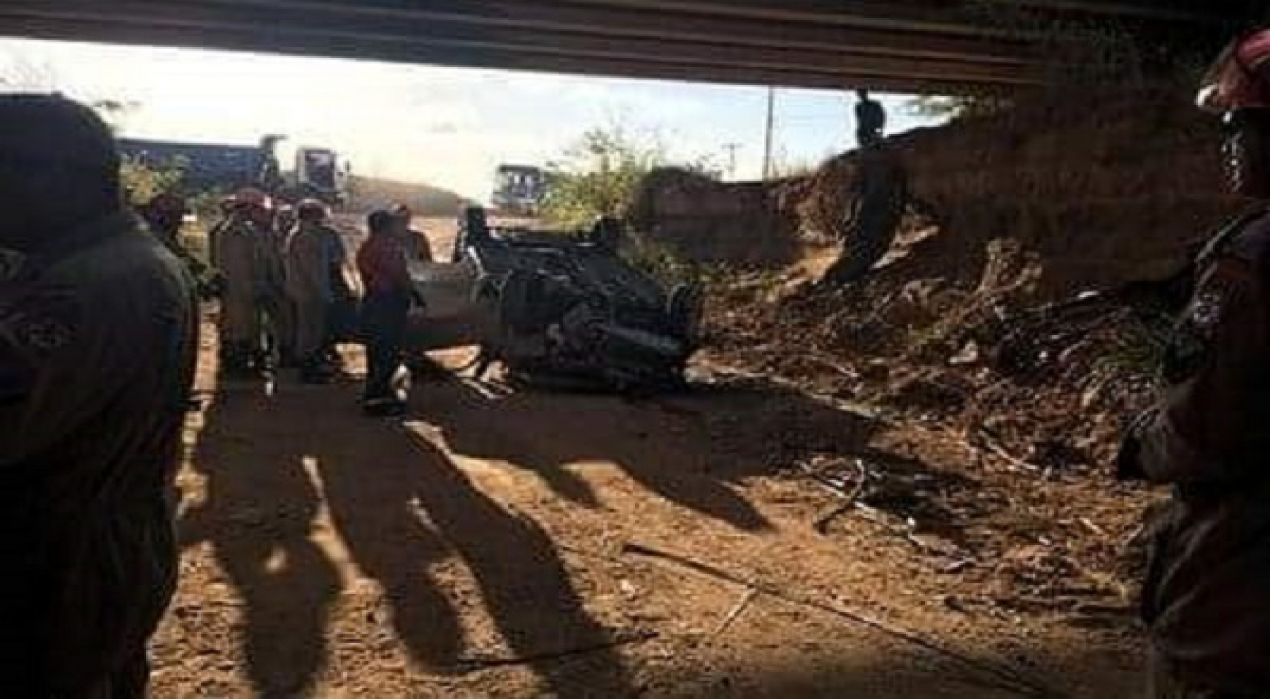 Na tarde deste sábado (17), um carro com duas pessoas capotou e acabou caindo de um viaduto no Km 77 da BR-101, sentindo João Pessoa — Natal.