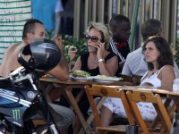 Um paparazzo fez um registro da loira, na manhã desta sexta-feira (15), que não é um bom exemplo para seu público.