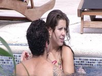 O casal emparedado Andressa e Nasser está aproveitando a segunda-feira para ficar juntinho. Depois de conversarem sobre os sentimentos da sister em relação à Fernanda, eles resolvem relaxar na piscina.