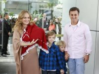 O casal de apresentadores posa para os fotógrafos com a caçula da família.