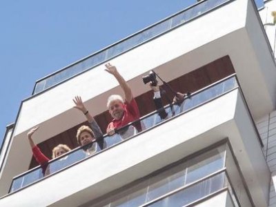 Ao chegar no local, Dilma abaixou o vidro do carro e acenou para os simpatizantes que fazem vigília. Minutos após entrar no prédio, Dilma apareceu na varanda do apartamento ao lado de Lula e da ex-primeira-dama Marisa Letícia.