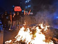 A maior parte dos manifestantes dispersou. Um grupo ateou fogo em sacos de lixo, depredou lixeiras, vasos de flores. Durante a confusão, um ônibus foi esvaziado. Manifestantes tentaram manobrar o veículo, mas não tiveram sucesso.