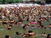 Em dia de tempo abafado, cariocas e turistas procuraram as praias do Rio de Janeiro para se refrescar. Os termômetros registraram 30ºC nesta segunda-feira de Carnaval. Foi difícil encontrar espaço até na pequena praia da Urca, na zona sul da cidade.