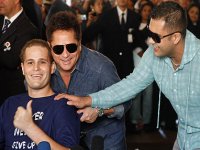 Rodeado por fãs, amigos e familiares o cantor, visivelmente bem mais magro, deixou o local e fez questão de falar com a imprensa sobre a emoção que estava sentindo, após se recuperar de um grave acidente sofrido no dia 20 de abril.