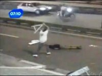 A câmera de segurança de um prédio flagrou a agressão, que aconteceu em uma avenida. O rapaz foi atacado com barras de ferro e uma placa de sinalização de trânsito, além de ter o corpo e a cabeça chutada pelos agressores.