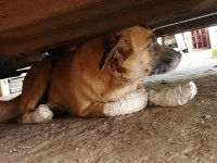 Ela sofreu os maus tratos na quarta-feira (12) e foi levada para o hospital veterinário da Unesp (Universidade Estadual de São Paulo), onde se recupera bem e consegue andar com as patas enfaixadas. A previsão é que dentro de 10 a 15 dias ela tenha alta e será colocada para adoção, após castração.