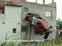 Um carro ficou pendurado em uma casa após “sobrevoar” um córrego na zona leste de São Paulo no domingo (15). O motorista sofreu ferimentos leves e foi socorrido pelo Corpo de Bombeiros e levado para um hospital da região. Nenhum morador da casa ficou ferido.