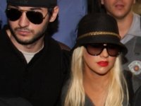 Acompanhada do namorado, o produtor musical Matthew Rutler, ela parecia assustada com o assédio da imprensa.