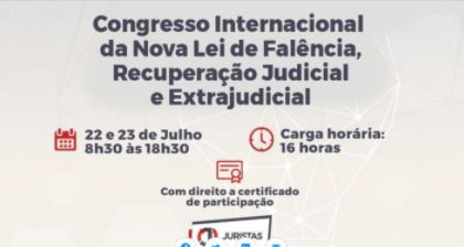 A primeira edição do “Congresso Internacional da Nova Lei de Falência, Recuperação Judicial e Extrajudicial” tem início, nesta quinta-feira (22), com transmissão pelo canal do Portal Juristas no YouTube. O evento, promovido pela Juristas Academy, acontece até a sexta-feira (23), com uma programação diversificada, que visa discutir temáticas relacionadas ao sistema de insolvência empresarial.