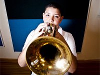 Matheus Carneiro tem só 12 anos e já faz parte de uma das maiores orquestras de São Paulo, a Sinfônica de Heliópolis. Ele é a única criança e se destaca tocando trompete, instrumento de sopro.