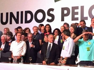 “Não podemos ignorar que o país enfrenta uma gravíssima crise política e econômica. Mas não podemos deixar – e esta é a tarefa do PMDB – que os graves problemas comprometam os ganhos sociais alcançados nos últimos tempos”, disse Temer.