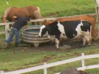 Durante a atividade, o peão “conversou” com os animais, explicando-os o jeito certo de realizar a atividade. Em determinado momento, o modelo avisou as vacas sobre o que iria fazer.