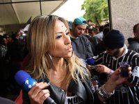 Sabrina estava prestes a entrar no carro para deixar o sambódromo e interrompeu subitamente a entrevista para procurar uma pulseira de ouro que acredita ter perdido ao tirar a fantasia.