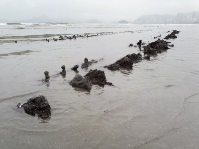 Destroços de uma embarcação com mais de 50 metros de comprimento foram localizados na orla de Santos, no litoral de São Paulo, nesta terça-feira (22). A erosão na faixa de areia da Praia do Embaré provocou o aparecimento de parte da estrutura de um possível navio, que pode ter encalhado ali há mais de um século.