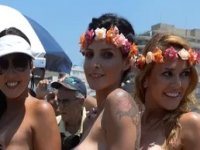 O momento do topless foi registrado por uma imensidão de fotógrafos clicando as oito mulheres que tiveram coragem de tirar a parte de cima dos biquínis.