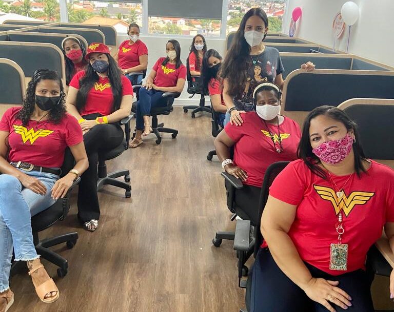 Viviane Torres, gerente nacional de operações do Educa, e equipe de call center ativo da empresa. FOTO: ACERVO PESSOAL
