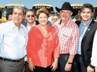 A presidente Dilma Rousseff entregou nesta segunda-feira 300 ônibus escolares a 78 cidades do Mato Grosso do Sul. Na cerimônia, Dilma entregou a chave dos veículos pessoalmente aos prefeitos, que tiraram uma foto ao lado da presidente. Antes do início da cerimônia, Dilma recebeu vaias de produtores rurais insatisfeitos com o projeto de demarcação de terras da Fundação Nacional dos Índio (Funai).