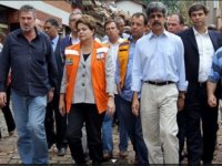 Aparentando consternação, Dilma se disse solidária com os familiares das vítimas das chuvas. “É de fato um momento muito dramático. As cenas são muito fortes, é visível o sofrimento das pessoas e o sofrimento é muito grande”, afirmou, acompanhada de vários ministros.