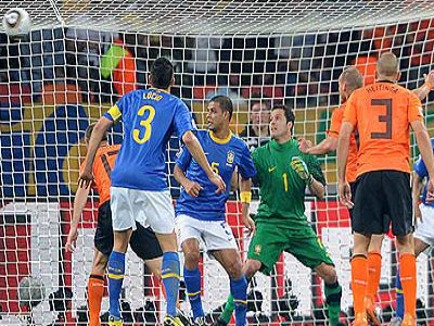 De volta ao time, começou bem contra a Holanda: acertou um belo passe para Robinho abrir o placar, aos 10min do primeiro tempo. E vinha fazendo boa partida até o começo do segundo tempo, quando colaborou para o empate holandês: em cruzamento de Sneijder, subiu junto, atrapalhou Julio César e a bola bateu em sua nuca antes de entrar.