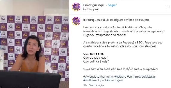 Lili Rodrigues forma chapa com Samuel Costa na Federação Rede-PSOL. Ela publicou um vídeo no Instagram denunciando o caso e pedindo proteção para as mulheres.