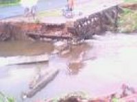 A força da água foi tanta que derrubou 17 postes de energia elétrica. O fornecimento foi suspenso na região.