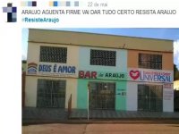 Milhares de internautas se manifestaram nas redes sociais nos últimos dias para dar apoio ao Bar do Araújo. A campanha começou depois da divulgação de uma imagem que mostra o estabelecimento entre duas igrejas evangélicas. Para muitos, a imagem não passava de uma montagem, mas a verdade é que o bar existiu e funcionou de julho a dezembro do ano passado, no setor Jardim Aureny III, na região sul de Palmas. Para a tristeza dos fãs de Araújo, ele “não resistiu” e teve que se mudar do local, mas não foi por causa das igrejas, segundo o proprietário.