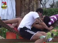 Durante conversa na área externa da sede, Thyago e Flávia ficaram bem aconchegados.