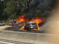 Os carros estavam estacionados na entrada de uma fazenda, na altura do quilômetro 98, sentido Jundiaí (SP). Os donos estavam do outro lado da pista, em uma cachoeira. Por causa do tempo seco e do vento, as chamas se alastraram rapidamente e chegaram até os carros. Ninguém ficou ferido.