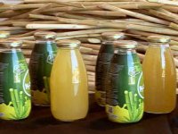 O caldo da cana é processado e colocado em garrafas de vidro de 300 ml. As embalagens passam pelo processo de pasteurização, onde o produto é aquecido para eliminar microorganismos e resfriado logo em seguida.