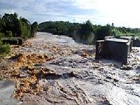 O rompimento da barragem aconteceu na quarta-feira (27), provocado pelas fortes chuvas que atingiram o Ceará, onde fica a cabeceira do rio Pirangi. A barragem foi construída no leito do rio, com capacidade para armazenar 52 milhões de metros cúbicos de água.