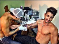 O cantor postou em sua página no Facebook uma foto em que aparece em uma das sessões de tatuagem. Na imagem o cantor galã aparece sorridente e sem camisa, exibindo a boa forma que tem encantado as fãs.