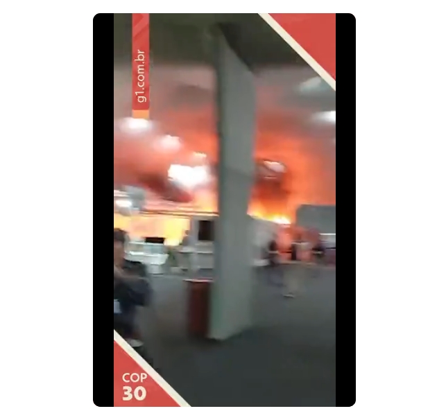 Um incêndio foi registrado nesta quinta-feira (20) no Pavilhão do Países, uma das áreas da Zona Azul da COP30, em Belém (PA). No VÍDEO acima, veja o momento em que o fogo começou.