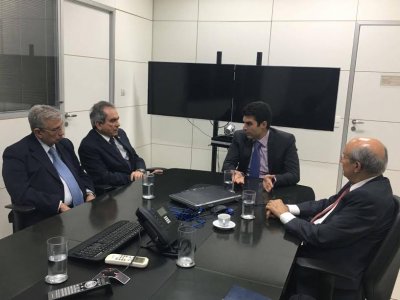 O Senador Raimundo Lira PMDB-PB) participou de reunião nesta quarta-feira (23) no Ministério da Integração Nacional, com o Ministro Hélder Barbalho, para debater assuntos relacionados à transposição de águas do Rio São Francisco. Também estiveram presentes os senadores Garibaldi Alves Filho (PMDB-RN) e José Pimentel (PT-CE).
