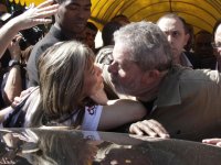 Quando deixava o Palácio de Confenções do Anhembi, em meio à confusão,Lula acabou tacando um beijaço ‘na boca’ uma militante.