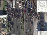 Um protesto bloqueia a Avenida das Américas, sentido São Conrado, na Zona Oeste do Rio, desde as 7h desta terça-feira (2). Os manifestantes estavam na altura da estação do BRT Salvador Allende. A circulação do BRT foi interrompida. A reivindicação é contra a extinção de uma linha de ônibus entre o Recreio dos Bandeirantes e Jacarepaguá.