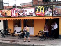 O empreendedor Carlos não dá o sobrenome porque sabe que vem processo da multinacional McDonald´s por aí. Também se precaveu de qualquer mal-entendido entre o público consumidor com um grafite político na parede lateral da loja: “O McFavela é contra a burguesia que menospreza nós que somos da periferia.”