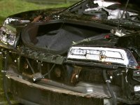 O acidente deixou o Camaro destruído. O veículo perdeu o teto e também o motor, que foi parar do outro lado do canteiro central da Avenida das Nações Unidas.