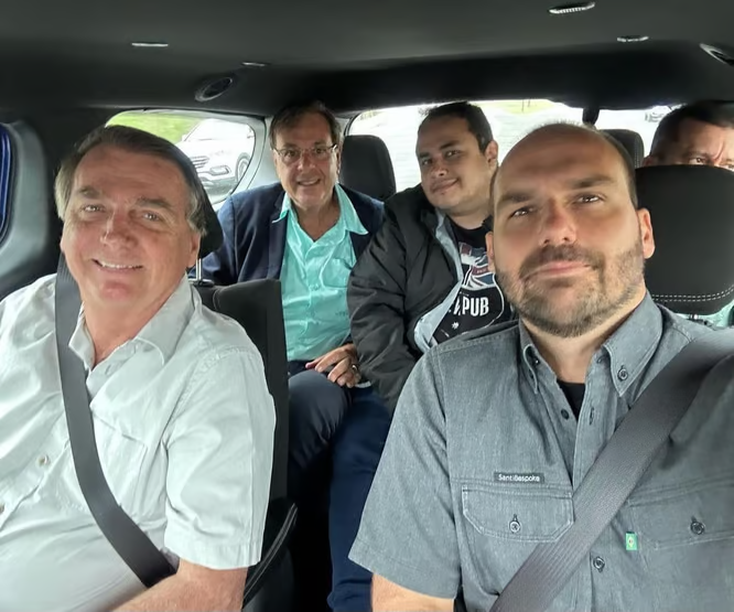 No grupo estão o ex-ministro do Turismo, Gilson Machado, o ex-assessor da Presidência o paraibano Tercio Arnaud Tomaz, apontado como integrante do chamado “gabinete do ódio”, e o ex-assessor e segurança de Bolsonaro, Max Guilherme Machado de Moura. Junto ao grupo está o filho do ex-presidente, Eduardo Bolsonaro.