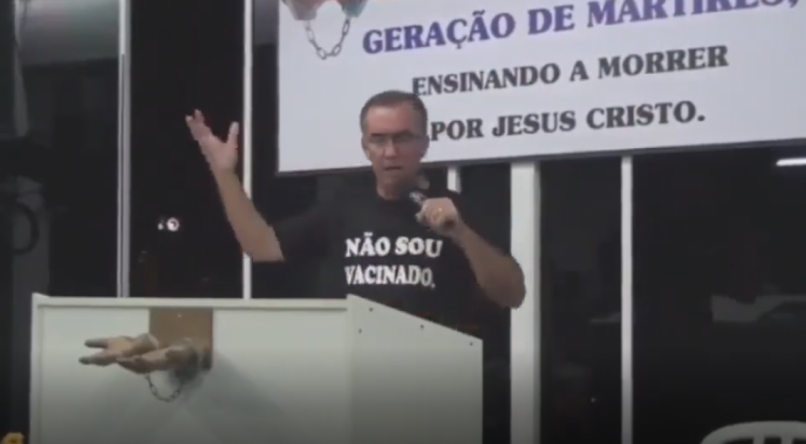 Vestindo uma camisa com a frase “não sou vacinado”, o pastor pregou a morte dos ministros.