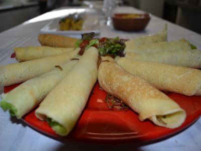 São pratos típicos da nossa culinária, como queijo, tapioca, brigadeiro, crepe, mas tudo recheado com larvas e grilos.