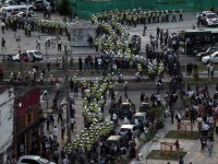 Metade do grupo chegou à Praça da Sé por volta das 23h, de acordo com a PM. Diante da Catedral da Sé, eles apaludiram a caminhada “em paz”. Em seguida, cercados por dois cordões de PMs, eles gritaram “não vai ter Copa”.