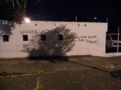 No momento em que a reportagem do LANCE! passou pelo local eram três inscrições: “Vagabundos”, “Ou joga por amor ou por terror” e “acabou a paz”, todas próximas à área das bilheterias da sede alvinegra.