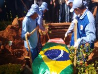 Sob o silêncio dos familiares e o canto dos fãs, o corpo do cantor Cristiano Araújo foi enterrado por volta do meio-dia desta quinta-feira (25) no cemitério Jardim das Palmeiras, em Goiânia. Emocionado, o pai, João Reis, permaneceu por alguns minutos chorando em cima do caixão e balançando a cabeça em sinal negativo. Próximo do túmulo do sertanejo foi enterrada a namorada, Allana Moraes, que também morreu após grave acidente de carro em uma estrada em Goiás.