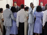 Apenas alguns familiares acompanharam a breve cerimônia, onde Lázaro apareceu de jeans e blazer jeans, enquanto Taís usava um vestidinho azul para assinar os papéis.