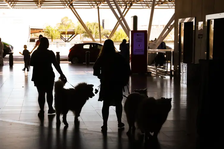 Tutores de cães da raça golden retriever se reuniram neste domingo (28) no aeroporto de Brasília para uma manifestação em defesa da regulamentação do transporte aéreo de cachorros de grande porte.
