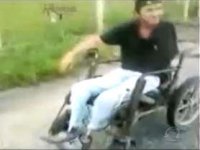 Até aí a história parecia comum, se não fosse o fato da imprudência ter sido cometida em cima de uma cadeira de rodas.