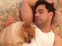 Em seu Instagram, o parceiro de Luciano registrou o cochilo que tirou com sua cadelinha nos braços.