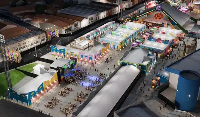 A cidade cenográfica terá réplicas de ícones da arquitetura e história da cidade de Campina Grande, como a Igreja Matriz de Nossa Senhora da Conceição, a Catedral; o Cassino Eldorado; o Beco da Pororoca; e a fogueira, que, segundo o layout, ficará a poucos metros da pirâmide.