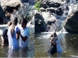 Após se aposentar do carnaval e se converter, Angela Bismarchi deu mais um passo na vida cristã e se batizou neste domingo. A cerimônia aconteceu em um rio em Tanguá, no município de Rio Bonito, no Estado do Rio. O marido dela, o cirurgião plástico Wagner de Moraes, também recebeu o sacramento. O momento foi de muita emoção.