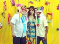A imagem, postada nesta quinta-feira no instagram, mostra a apresentadora em trajes bem carnavalescos ao lado de companheiros de trabalho, fantasiados e irreconhecíveis.